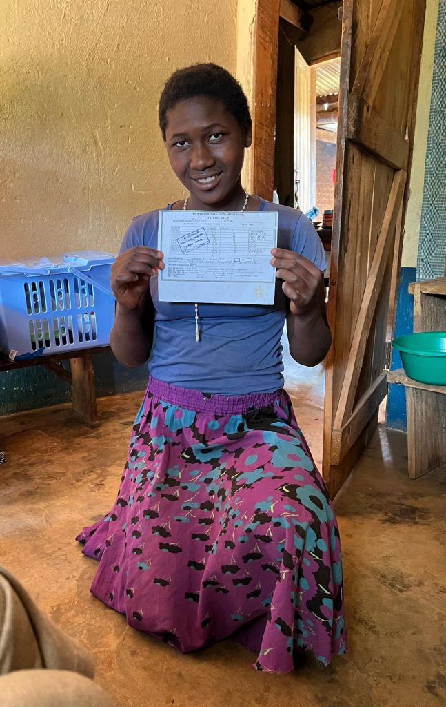 Maria wurde mit 4 Jahren von Maria Chilale adoptiert. Maria Chilale schreibt über ihre Adoptivtochter: „Maria´s Geschichte ist traurig. Ihre Mutter starb an HIV als sie 4 Jahre alt war. Sie lebten in Dedza, in der Nähe der Hauptstadt. Als ihre Mutter merkte, dass sie sterben würde, fragte sie eine Freundin, wer ihr einziges Kind gut behandeln würde. Diese Freundin kannte mich, aber ich musste ihr sagen, dass ich schon genug Kinder hatte. Die Freundin beharrte so sehr darauf und sagte, dass die Mutter nur friedlich sterben könne, wenn sie wüsste, dass ihr Kind gut versorgt ist. Schließlich war mein Bedauern doch so groß, dass ich das Kind annahm. Sie kam in mein Haus am 31. Oktober 2013. Darauf teilte ich der Mutter mit, dass sie sicher angekommen sei und ich sie gut behandeln würde. Noch in derselben Nacht starb die Mutter. Maria ist introvertiert und zurückgezogen und es ist schwer sie gut zu kennen. Ihre Mutter war bei Geburt bereits infiziert und hatte wenig Nahrung für die Kleine. Ihre Familie half ihr nicht, weil sie eine Prostituierte war. Von all meinen Kindern sehe ich bei Maria jedoch das größte Potential, die Oberschule zu schaffen. Deshalb bitte ich Sie, ihr zu helfen.“