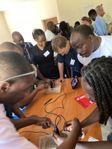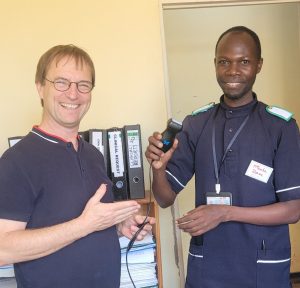 Möglich wird POCUS durch mobile Ultraschallgeräte, die nicht größer als ein elektrischer Rasierapparat sind und die an ein Mobiltelefon oder Tablet-PC angeschlossen werden. Es war uns wichtig, dass die meisten Teilnehmer die Gelegenheit bekamen, die Ultraschalltechnik auch nach dem Kurs weiter einzusetzen. Insgesamt brachte unser Team deshalb 10 Ultraschallgeräte mit, die von den Teilnehmern zu einem subventionierten Preis von 1000€ erworben werden konnten. Darüber hinaus bestand die Möglichkeit den Erwerb über einen Mikrokredit zu finanzieren, wovon 7 Teilnehmer gebrauch machten. Die Geräte bieten die Möglichkeit telemedizinischer Unterstützung auch von Deutschland über das Internet. Dies sollte intensiv eingeübt und zur Unterstützung im Nachgang eingesetzt werden. Leider hinderten uns technische Probleme daran, dieses Ziel zu erreichen. An einer Lösung wird zurzeit noch gearbeitet.