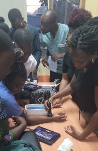 Um die Rahmenbedingungen besser einschätzen zu können, begannen wir mit 3- stündigen Ultraschallkursen. Themen waren eine Einführung in die Sonografie, Punktion von Gefäßen, Übersicht zu den Themen Regionalanästhesie mit Ultraschall, Lungenultraschall sowie Trauma-Ultraschall. Gefolgt von praktischen Übungen an einem Punktionsmodell, das Angelika vor Ort „kochte“ damit es unser Gepäck nicht beschwerte sowie Schallübungen an Freiwilligen.